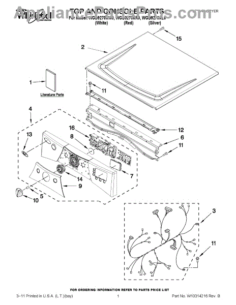 Parts for Whirlpool WGD9270XL0: 01 - Top And Console Parts