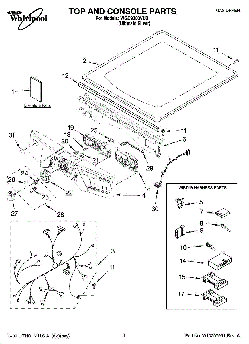 Replace your dryer's internal wire harness if wires are damaged, frayed, burned, or connections are loose. Restores proper electrical routing between components.