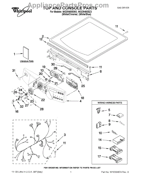 This wire harness routes electrical power and signals between components so the appliance's controls and motors operate correctly. It replaces a damaged or worn connector set to restore reliable electrical connections. What it does: