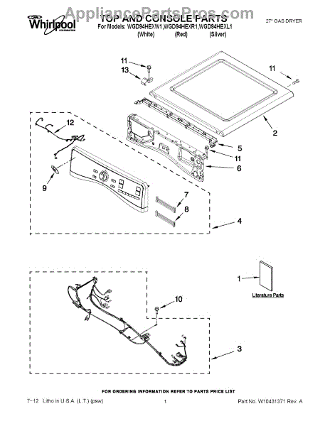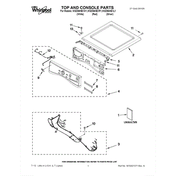Parts for Whirlpool WGD94HEXL1: 01 - Top And Console Parts