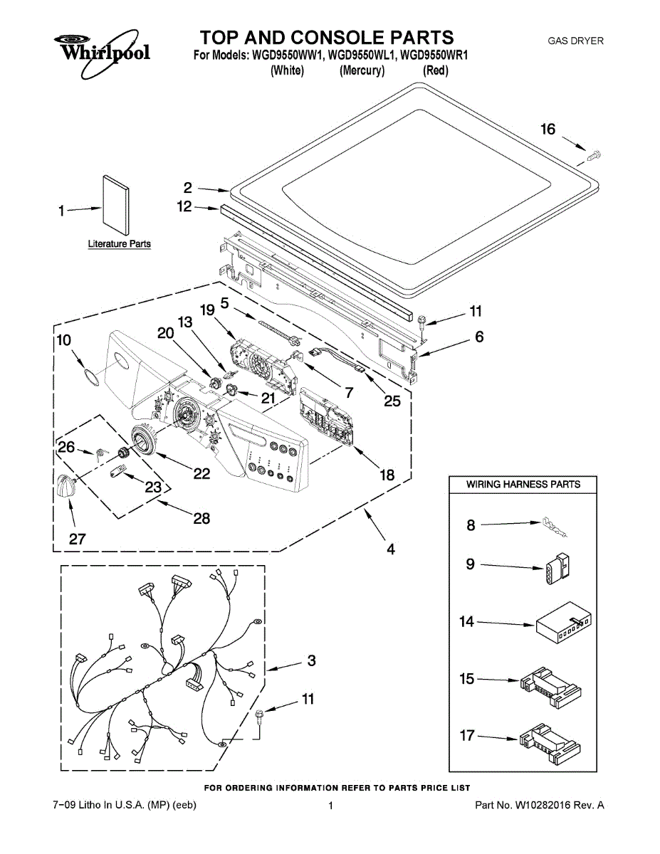 Wire harness that routes electrical power between dryer components. Replace if wiring is damaged, connectors are worn, or harness is broken or missing.