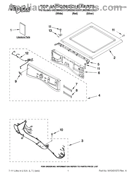 Parts for Whirlpool WGD95HEXL1: 01 - Top And Console Parts