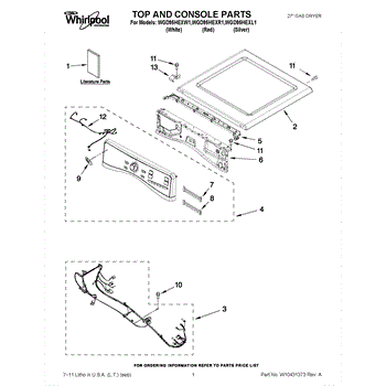 Parts for Whirlpool WGD95HEXR1: 01 - Top And Console Parts