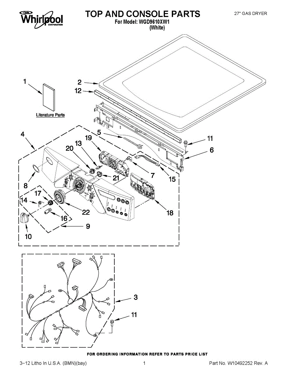 Wire harness for dryers. Connects electrical components inside the dryer cabinet. Replace if wires are frayed, damaged, or connections are loose or burnt.