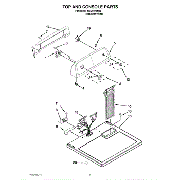 The Console Clip is an OEM part compatible with Whirlpool dryers. This clip secures the control console assembly to the top panel, ensuring it is firmly mounted during operation. Properly functioning clips are necessary to maintain the correct alignment of controls and prevent detachment.