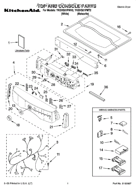 Parts for Whirlpool YKEHS01PWH2: 01 - Top And Console Parts
