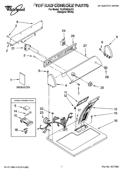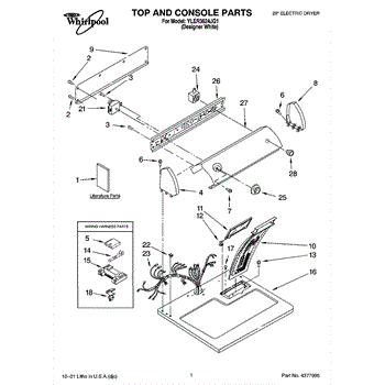 The Dryer Repair Kit is an OEM replacement part for Whirlpool 29-inch large capacity dryer models. It is a kit designed to provide various essential components and hardware needed for common dryer repairs or maintenance tasks.
