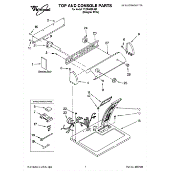 The Dryer Repair Kit is an OEM replacement part for Whirlpool 29-inch large capacity dryer models. It is a kit designed to provide various essential components and hardware needed for common dryer repairs or maintenance tasks.