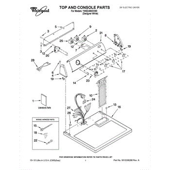 The Console Clip is an OEM part compatible with Whirlpool dryers. This clip secures the control console assembly to the top panel, ensuring it is firmly mounted during operation. Properly functioning clips are necessary to maintain the correct alignment of controls and prevent detachment.