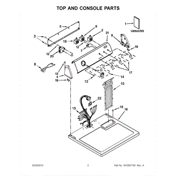 The Console Clip is an OEM part compatible with Whirlpool dryers. This clip secures the control console assembly to the top panel, ensuring it is firmly mounted during operation. Properly functioning clips are necessary to maintain the correct alignment of controls and prevent detachment.