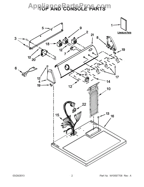 The Dryer Timer is an OEM part for Whirlpool dryers. It controls the drying cycles by regulating the duration and sequence of operations, ensuring that clothes are dried properly according to the selected settings.