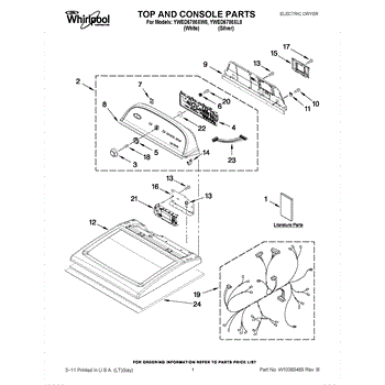 The Console Clip is an OEM part compatible with Whirlpool dryers. This clip secures the control console assembly to the top panel, ensuring it is firmly mounted during operation. Properly functioning clips are necessary to maintain the correct alignment of controls and prevent detachment.