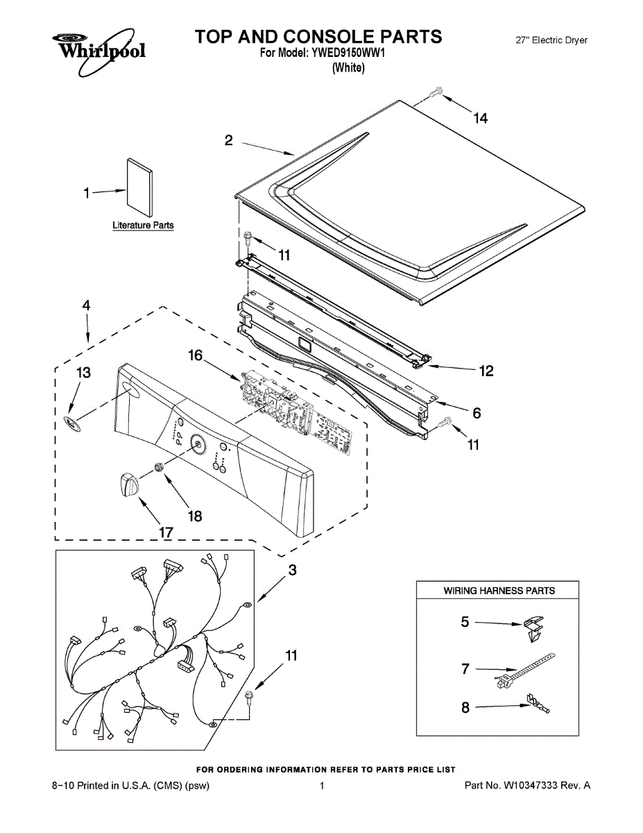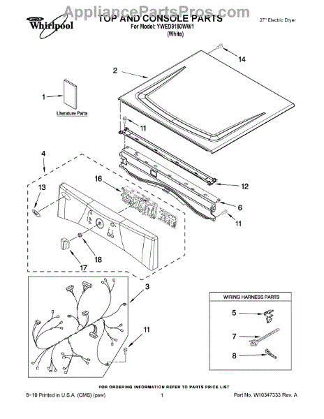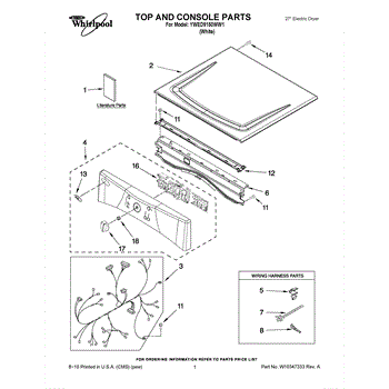 White dryer top panel that covers the drum and internal components. Replace if cracked, damaged, rusty, or worn from heavy use or chemical spills.