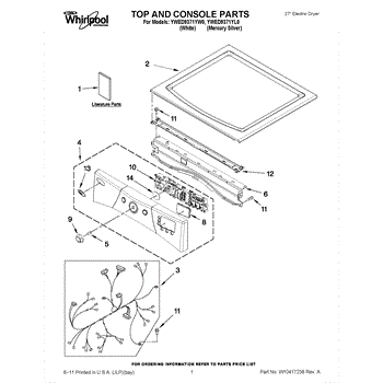Parts for Whirlpool YWED9371YW0: 01 - Top And Console Parts