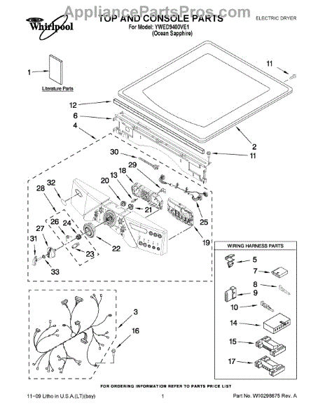 This wire harness routes electrical power and signals between components so the appliance's controls and motors operate correctly. It replaces a damaged or worn connector set to restore reliable electrical connections. What it does: