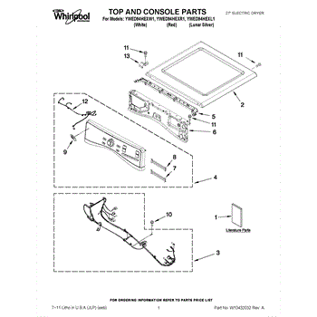 Parts for Whirlpool YWED94HEXL1: 01 - Top And Console Parts