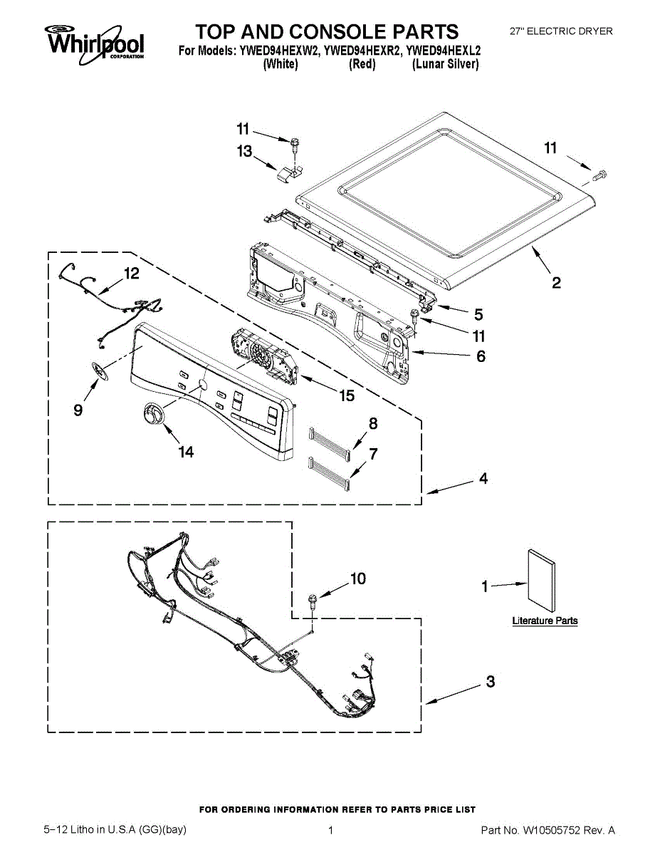 Parts for Whirlpool YWED94HEXL2: 01 - Top And Console Parts