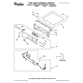 Parts for Whirlpool YWED94HEXR2: 01 - Top And Console Parts