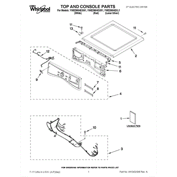 Parts for Whirlpool YWED95HEXR1: 01 - Top And Console Parts
