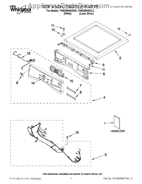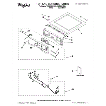 Parts for Whirlpool YWED95HEXW2: 01 - Top And Console Parts