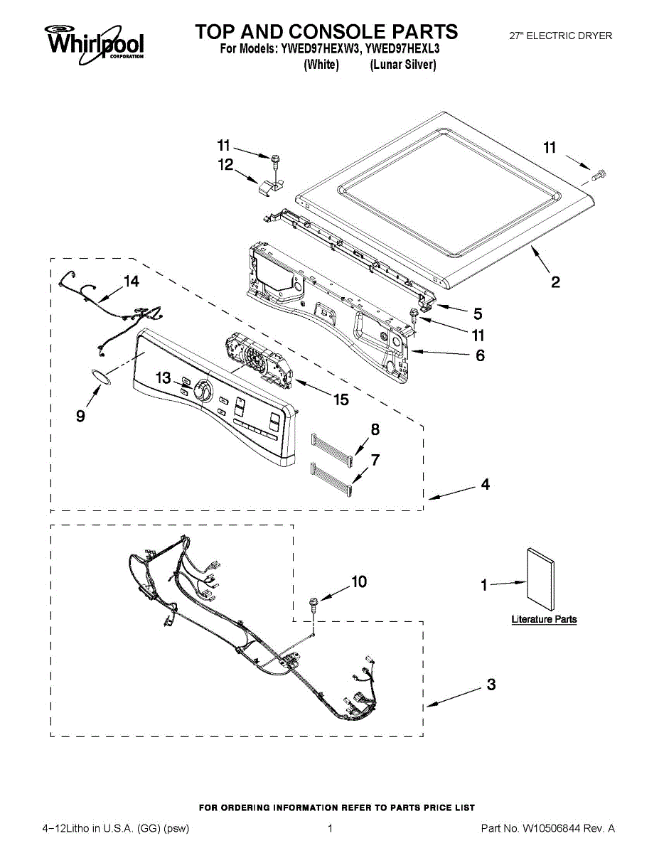 Parts for Whirlpool YWED97HEXL3: 01 - Top And Console Parts