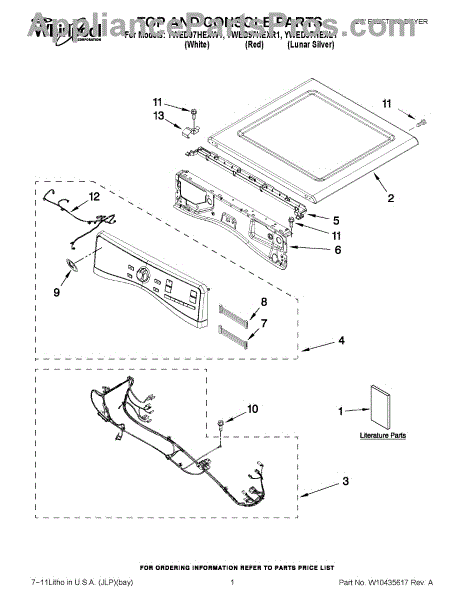 Parts for Whirlpool YWED97HEXR1: 01 - Top And Console Parts