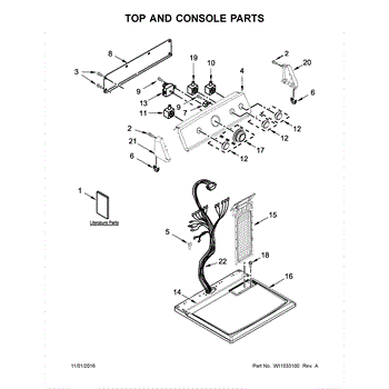 The Console Clip is an OEM part compatible with Whirlpool dryers. This clip secures the control console assembly to the top panel, ensuring it is firmly mounted during operation. Properly functioning clips are necessary to maintain the correct alignment of controls and prevent detachment.