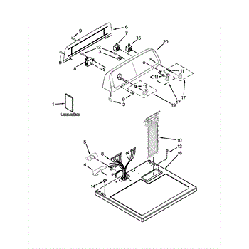 The Console Clip is an OEM part compatible with Whirlpool dryers. This clip secures the control console assembly to the top panel, ensuring it is firmly mounted during operation. Properly functioning clips are necessary to maintain the correct alignment of controls and prevent detachment.