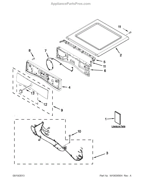This top panel is the upper cover of your dryer's cabinet. Replace a dented, rusted, or warped panel to restore a secure, flush fit and the clean, finished look of your machine.