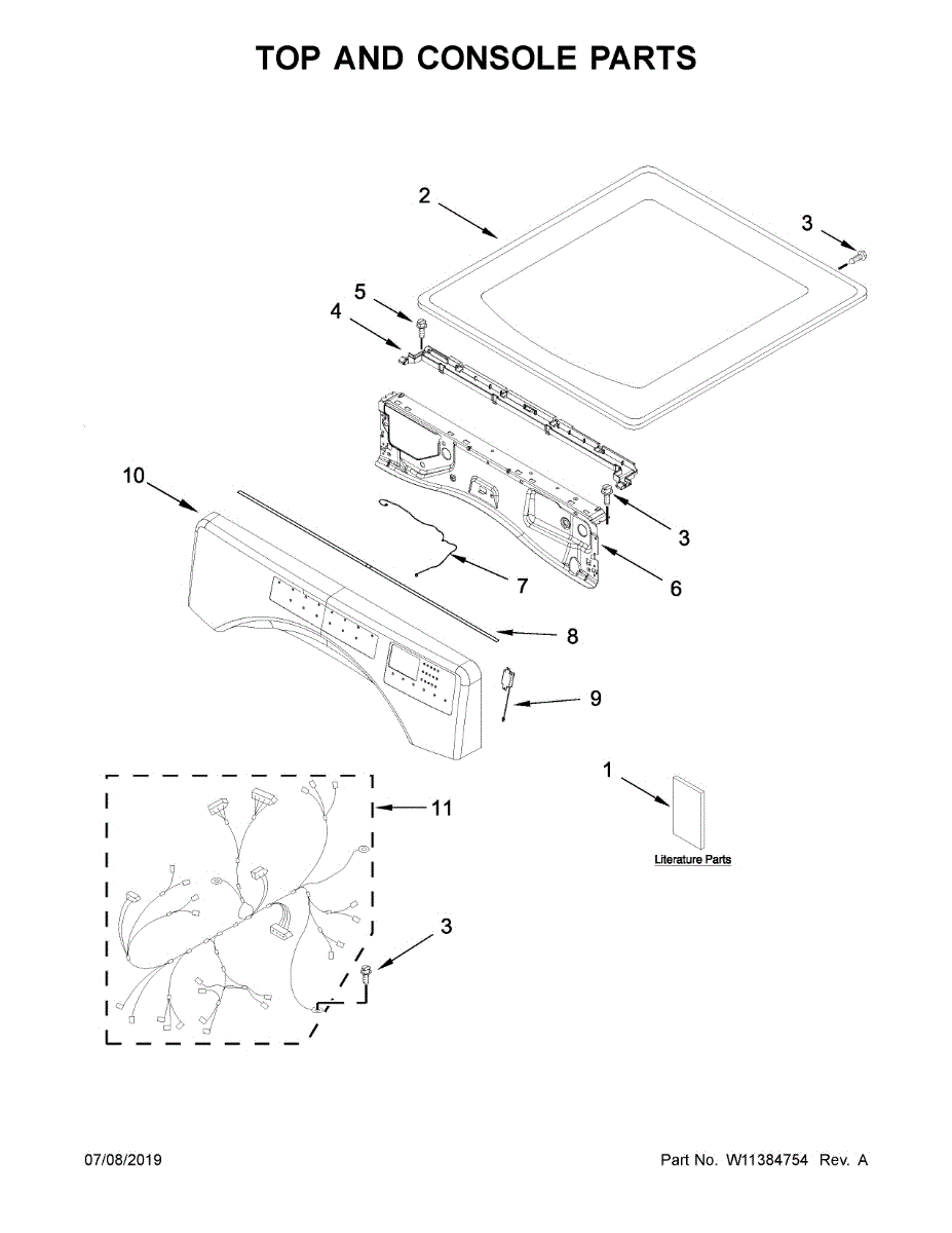 This top panel is the upper cover of your dryer's cabinet. Replace a dented, rusted, or warped panel to restore a secure, flush fit and the clean, finished look of your machine.