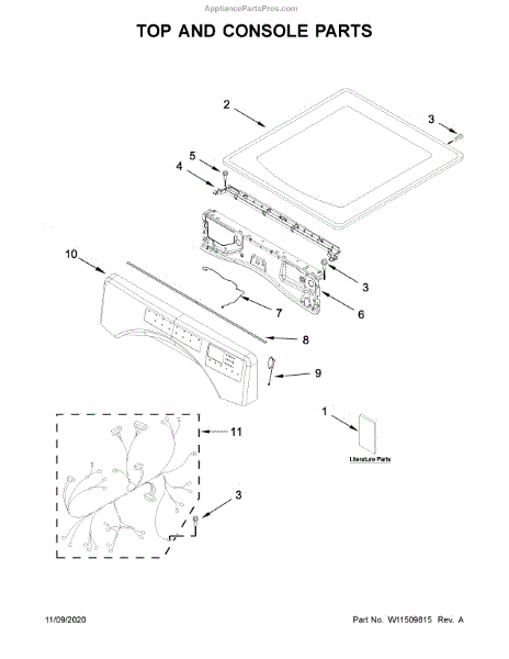 This top panel is the upper cover of your dryer's cabinet. Replace a dented, rusted, or warped panel to restore a secure, flush fit and the clean, finished look of your machine.