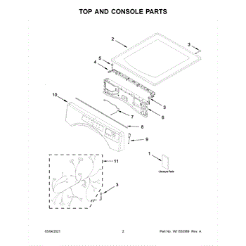 This top panel is the upper cover of your dryer's cabinet. Replace a dented, rusted, or warped panel to restore a secure, flush fit and the clean, finished look of your machine.