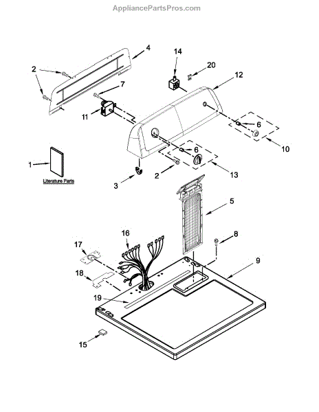 This rear panel replaces the dryer's back bulkhead to restore the appliance's structural enclosure and help protect internal components from dust and debris. It provides a clean mounting surface for internal parts and improves cabinet integrity. What it does: