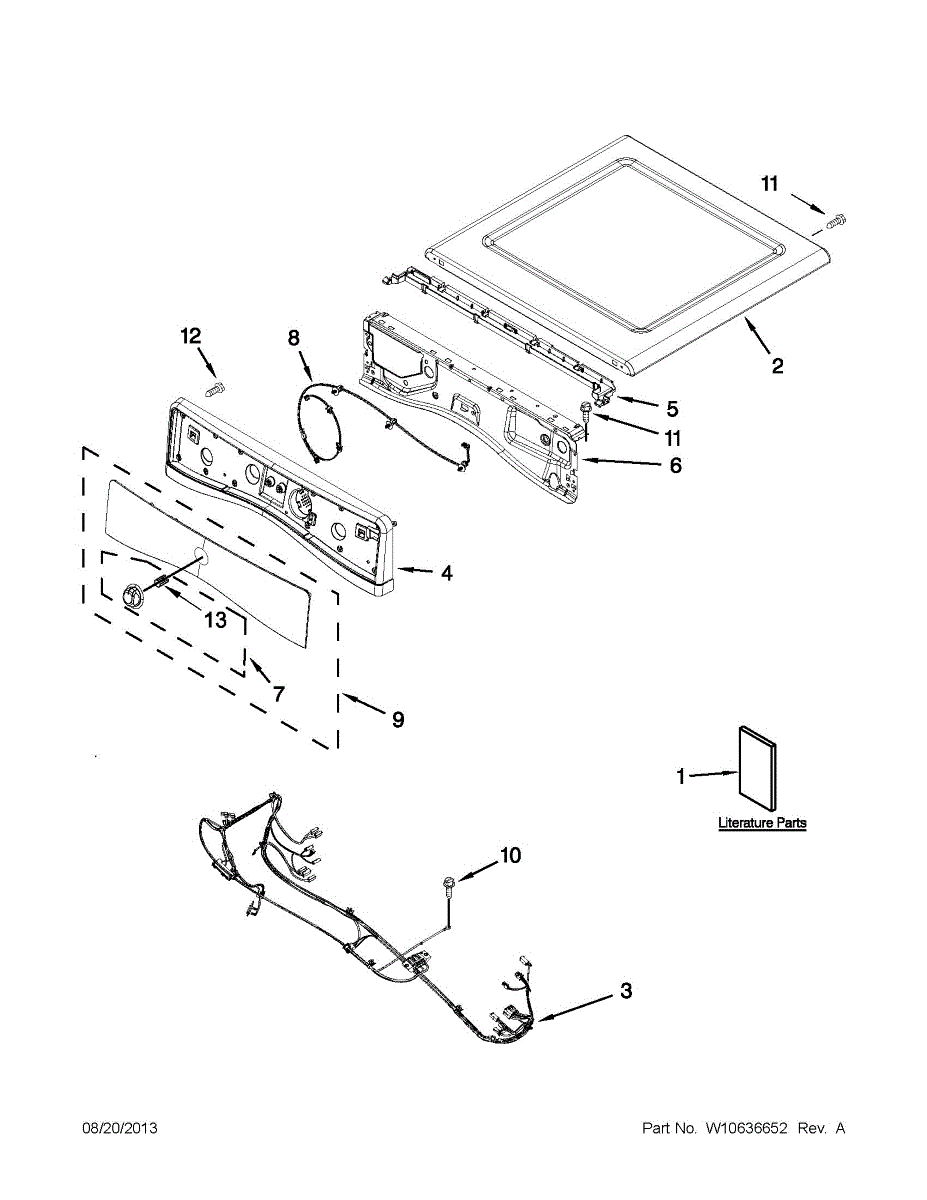 This top panel is the upper cover of your dryer's cabinet. Replace a dented, rusted, or warped panel to restore a secure, flush fit and the clean, finished look of your machine.
