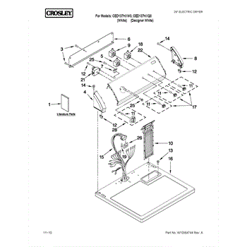 The Console Clip is an OEM part compatible with Whirlpool dryers. This clip secures the control console assembly to the top panel, ensuring it is firmly mounted during operation. Properly functioning clips are necessary to maintain the correct alignment of controls and prevent detachment.