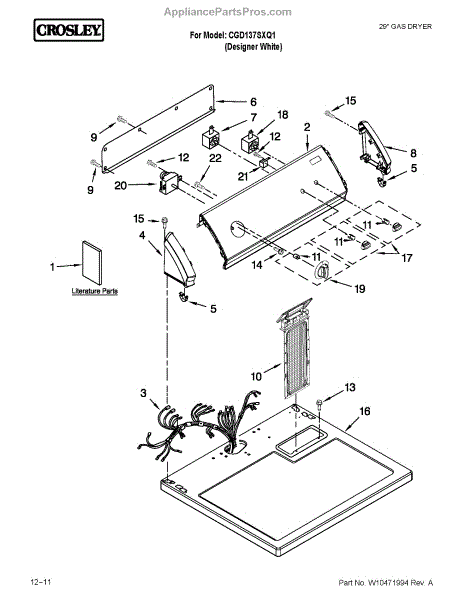 Parts for Crosley CGD137SXQ1: Top And Console Parts