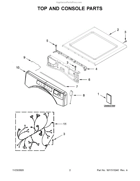This top panel is the upper cover of your dryer's cabinet. Replace a dented, rusted, or warped panel to restore a secure, flush fit and the clean, finished look of your machine.