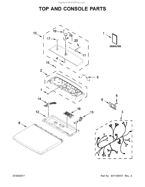 The Control Panel is an OEM part for Whirlpool dryers. Mounted prominently on the door, it houses intuitive touch controls, indicator lights, and cycle buttons enabling customized fabric care.
