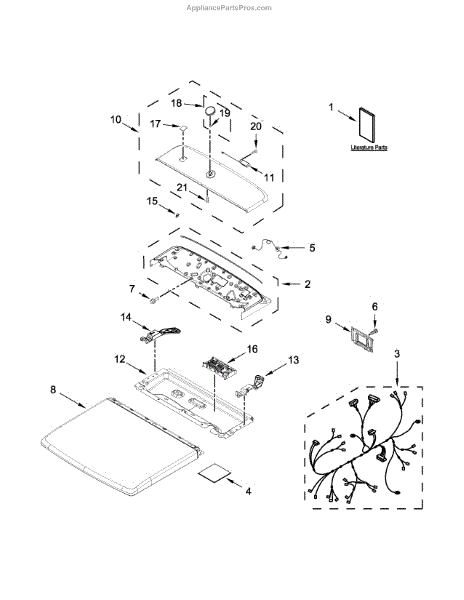 The Control Panel is an OEM part for Whirlpool dryers. Mounted prominently on the door, it houses intuitive touch controls, indicator lights, and cycle buttons enabling customized fabric care.