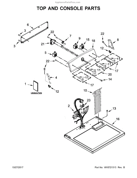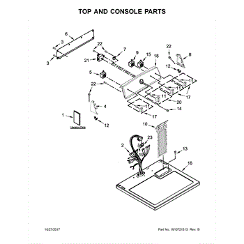 The Console Clip is an OEM part compatible with Whirlpool dryers. This clip secures the control console assembly to the top panel, ensuring it is firmly mounted during operation. Properly functioning clips are necessary to maintain the correct alignment of controls and prevent detachment.