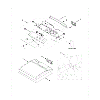 The Top is an OEM replacement part for Whirlpool dryers. It serves as the protective cover for the top of the dryer, keeping dust and debris out while providing a finished look. It is designed to withstand the demands of daily use and provides a sturdy surface for placing items on top of the dryer.