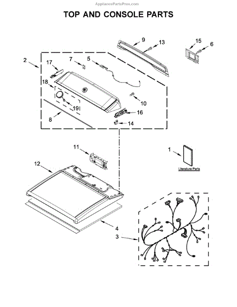 The Top is an OEM replacement part for Whirlpool dryers. It serves as the protective cover for the top of the dryer, keeping dust and debris out while providing a finished look. It is designed to withstand the demands of daily use and provides a sturdy surface for placing items on top of the dryer.