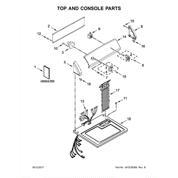 The Console Clip is an OEM part compatible with Whirlpool dryers. This clip secures the control console assembly to the top panel, ensuring it is firmly mounted during operation. Properly functioning clips are necessary to maintain the correct alignment of controls and prevent detachment.