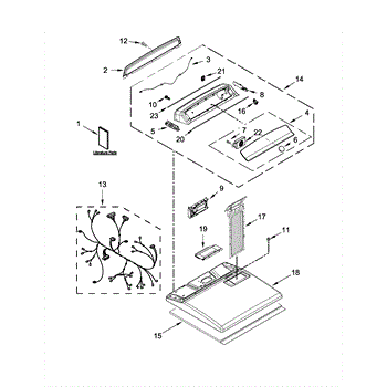 The Console Clip is an OEM part compatible with Whirlpool dryers. This clip secures the control console assembly to the top panel, ensuring it is firmly mounted during operation. Properly functioning clips are necessary to maintain the correct alignment of controls and prevent detachment.