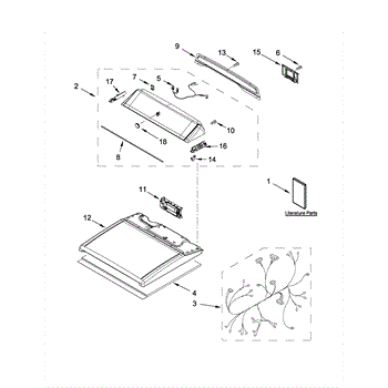 The Top is an OEM replacement part for Whirlpool dryers. It serves as the protective cover for the top of the dryer, keeping dust and debris out while providing a finished look. It is designed to withstand the demands of daily use and provides a sturdy surface for placing items on top of the dryer.