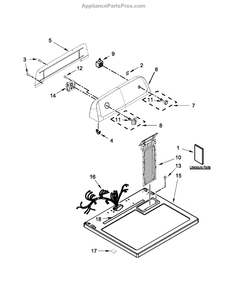 This rear panel replaces the dryer's back bulkhead to restore the appliance's structural enclosure and help protect internal components from dust and debris. It provides a clean mounting surface for internal parts and improves cabinet integrity. What it does: