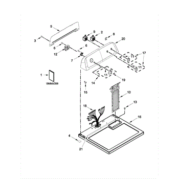 The Console Clip is an OEM part compatible with Whirlpool dryers. This clip secures the control console assembly to the top panel, ensuring it is firmly mounted during operation. Properly functioning clips are necessary to maintain the correct alignment of controls and prevent detachment.