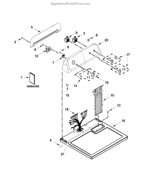 This rear panel replaces the dryer's back bulkhead to restore the appliance's structural enclosure and help protect internal components from dust and debris. It provides a clean mounting surface for internal parts and improves cabinet integrity. What it does: