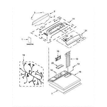 The Console Clip is an OEM part compatible with Whirlpool dryers. This clip secures the control console assembly to the top panel, ensuring it is firmly mounted during operation. Properly functioning clips are necessary to maintain the correct alignment of controls and prevent detachment.