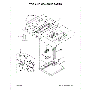 The Console Clip is an OEM part compatible with Whirlpool dryers. This clip secures the control console assembly to the top panel, ensuring it is firmly mounted during operation. Properly functioning clips are necessary to maintain the correct alignment of controls and prevent detachment.